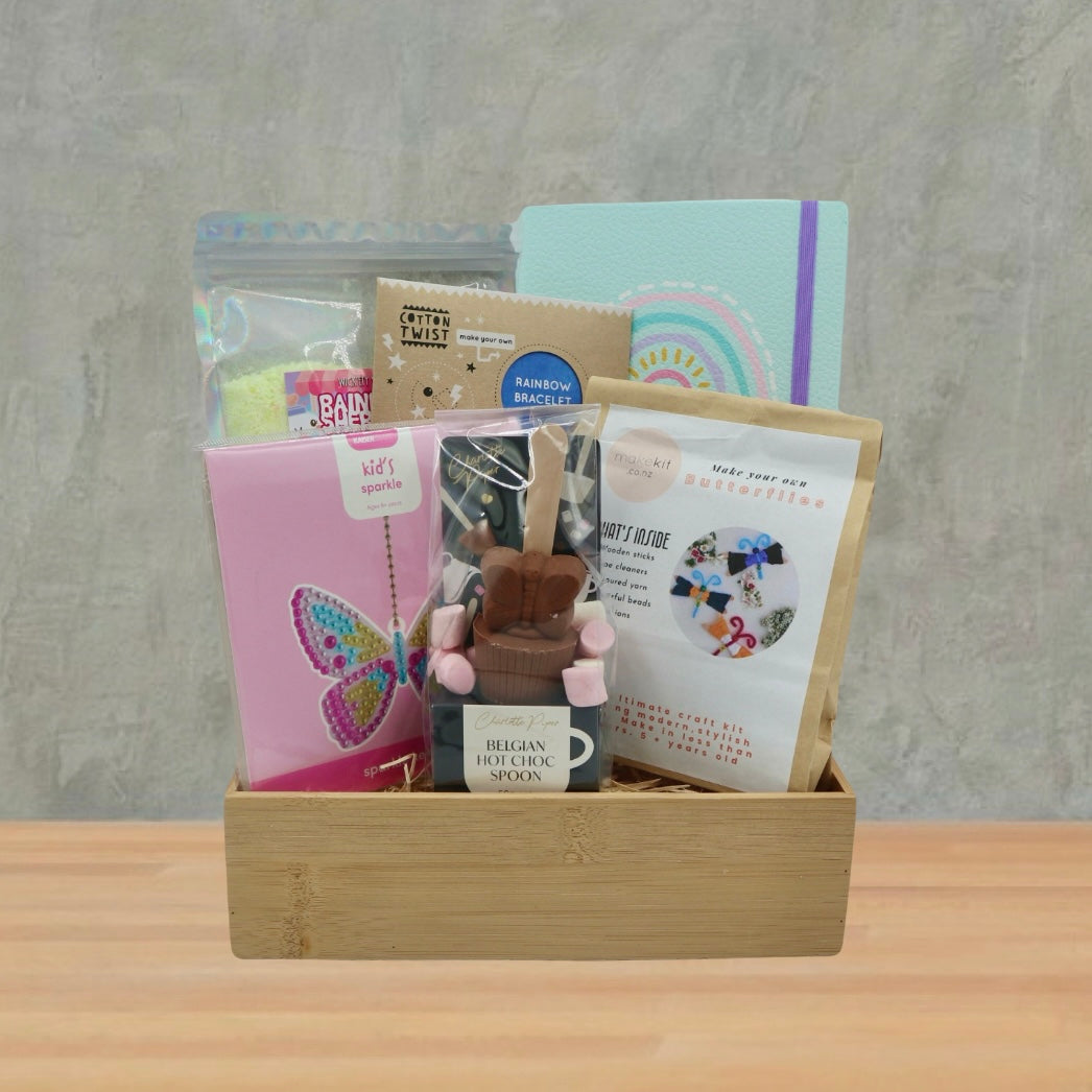 Unleash colourful magic with our Rainbow Butterfly Gift Box! Featuring fluttering butterflies, and a rainbow of colours in the fun craft activities, notebook, foaming bath dust, and a sweet hot chocolate spoon, this gift set is the perfect surprise for any occasion! Everything you need to put a smile on someone's face!