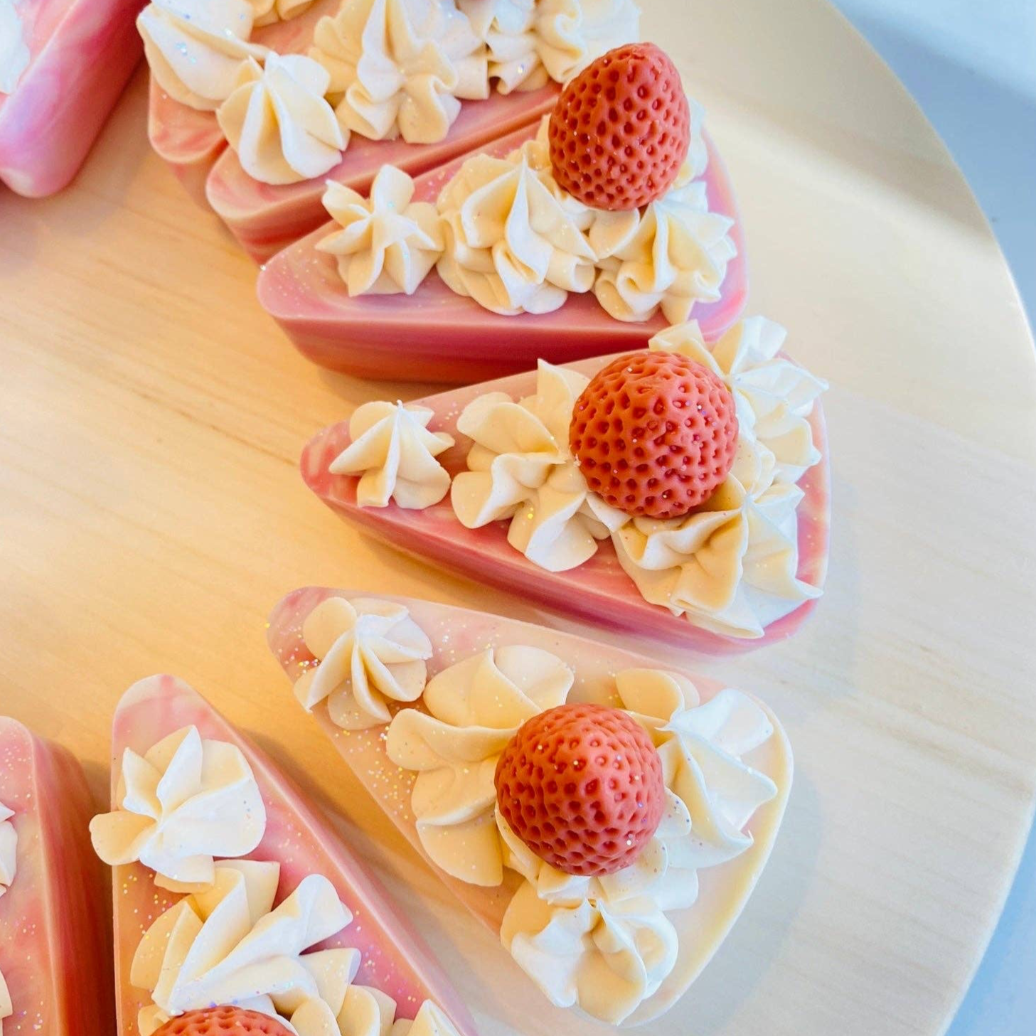 This 'Cottage Sponge cake' soap has been designed to mimic a slice of strawberry cake, complete with soap-crafted 'cream frosting' and a 'strawberry' topping.