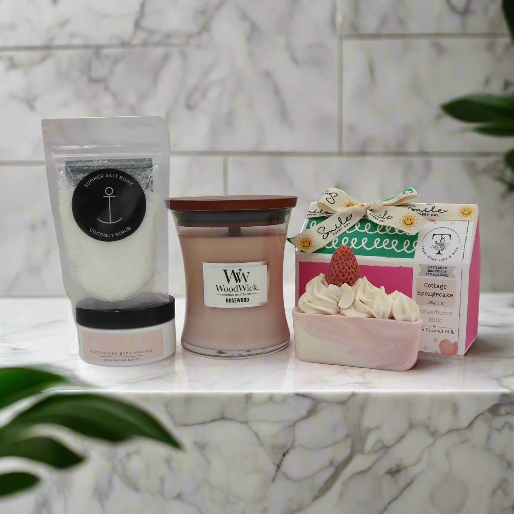 Make their birthday extra special with our Happy Birthday Gift Box! The soy candle will bring a warm scented glow to their space, the cake shaped soap adds a charming touch, and the salt scrub and body souffle will give them a luxurious spa experience. Treat them to a day of pampering and fun.